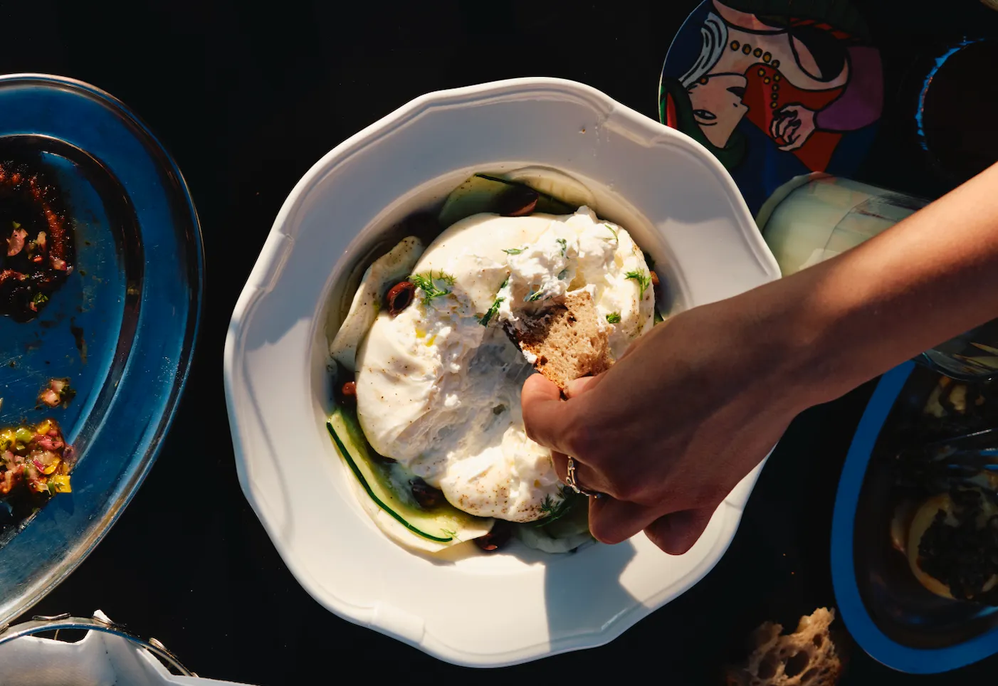 - Burrata 250g, fenouil, concombre, olives taggiasche (23 €)