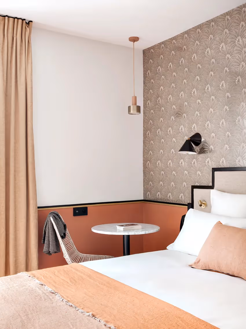Articulées autour du magnifique escalier ancien, les 33 chambres de l’hôtel Doisy sont toutes finement décorées pour vous offrir votre propre espace de vie. Le moindre détail a été pensé pour créer une atmosphère chaleureuse. Ainsi, le papier peint invite à l’exploration alors que la tête de lit est un hommage à Paris.