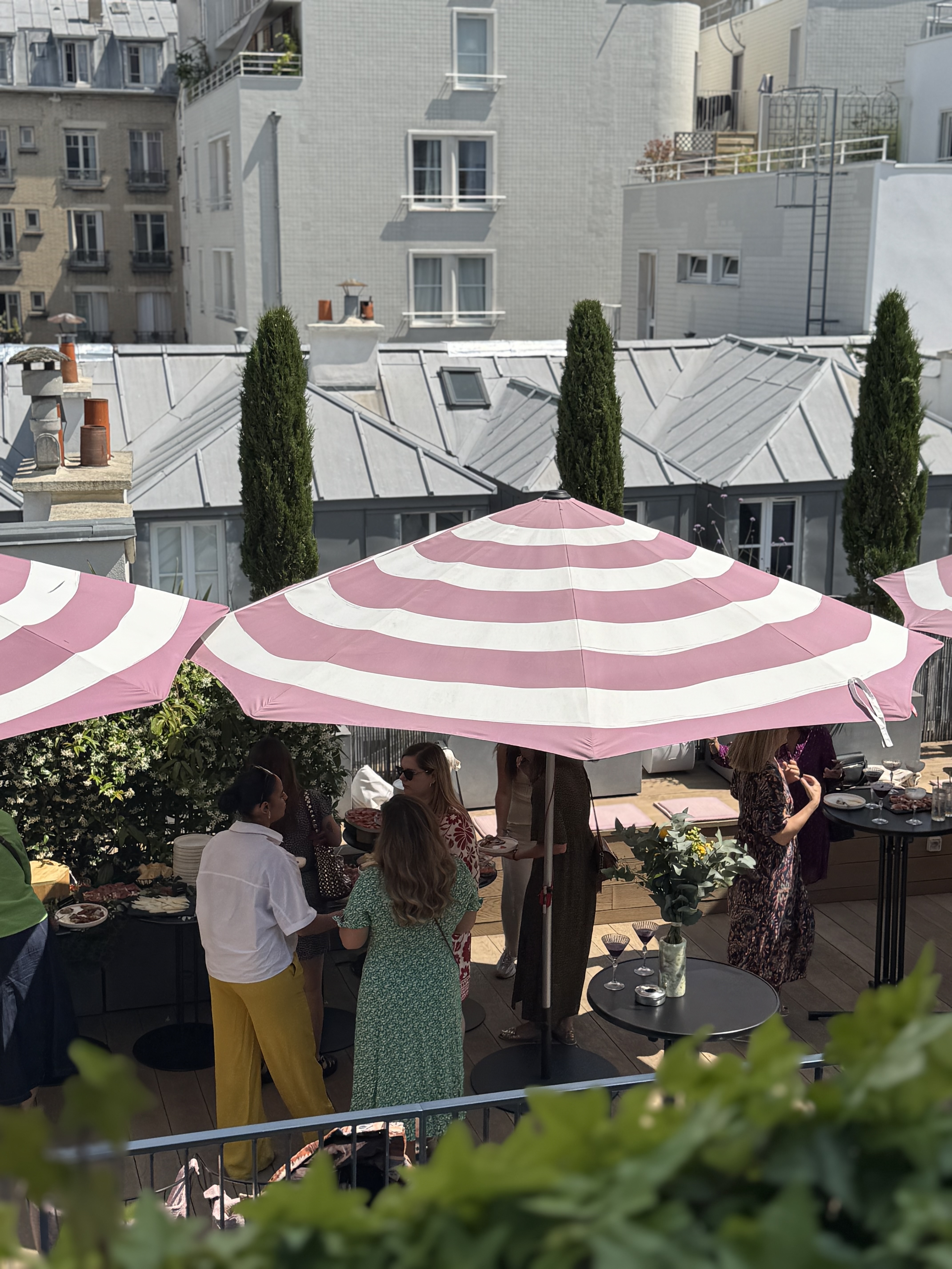 Quatre étages plus hauts, vous pourrez admirer les étoiles, et apercevoir la Tour Eiffel scintillante tout en sirotant votre cocktail. Cet espace peut recevoir jusqu'à 70 convives debout et 25 assis, à l'occasion d'un cocktail déjeunatoire pour profiter de ces espaces lumineux, d'un afterwork, d'un cocktail dinatoire ou autre type d'événement privé.
