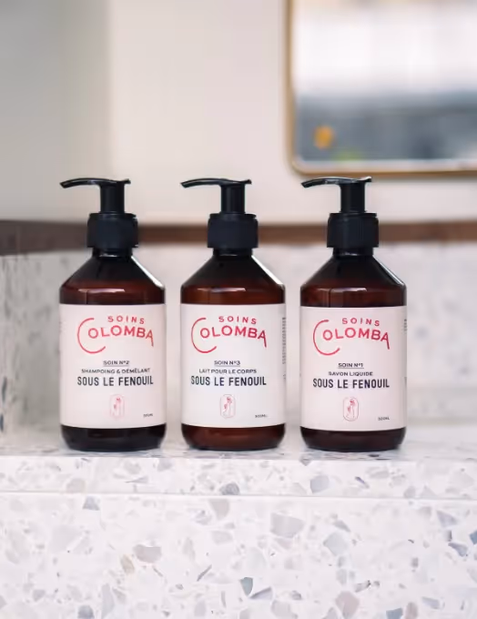 Nos établissementsLigne complète des soins Colomba : gel douche, shampoing et démêlant, lait pour le corps